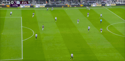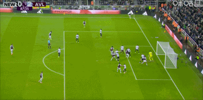 第88分鐘,迪涅左路傳中,沃特金斯頭球破門,維拉2-0紐卡