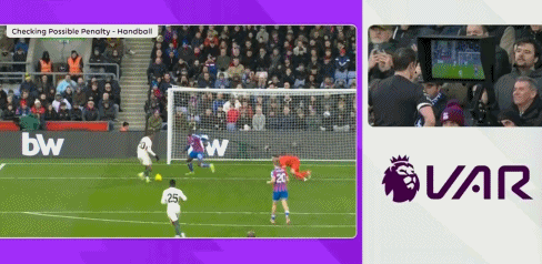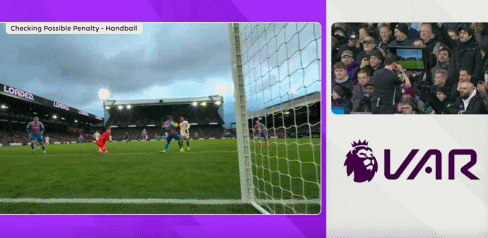 比賽的第59分鐘,佩德羅禁區(qū)內(nèi)推射,球被坎沃擋出,盡管 第一時間示意,但主裁判并未判罰點球。隨后,視頻助理裁判介入判罰,并且要求主裁判回看慢鏡頭。